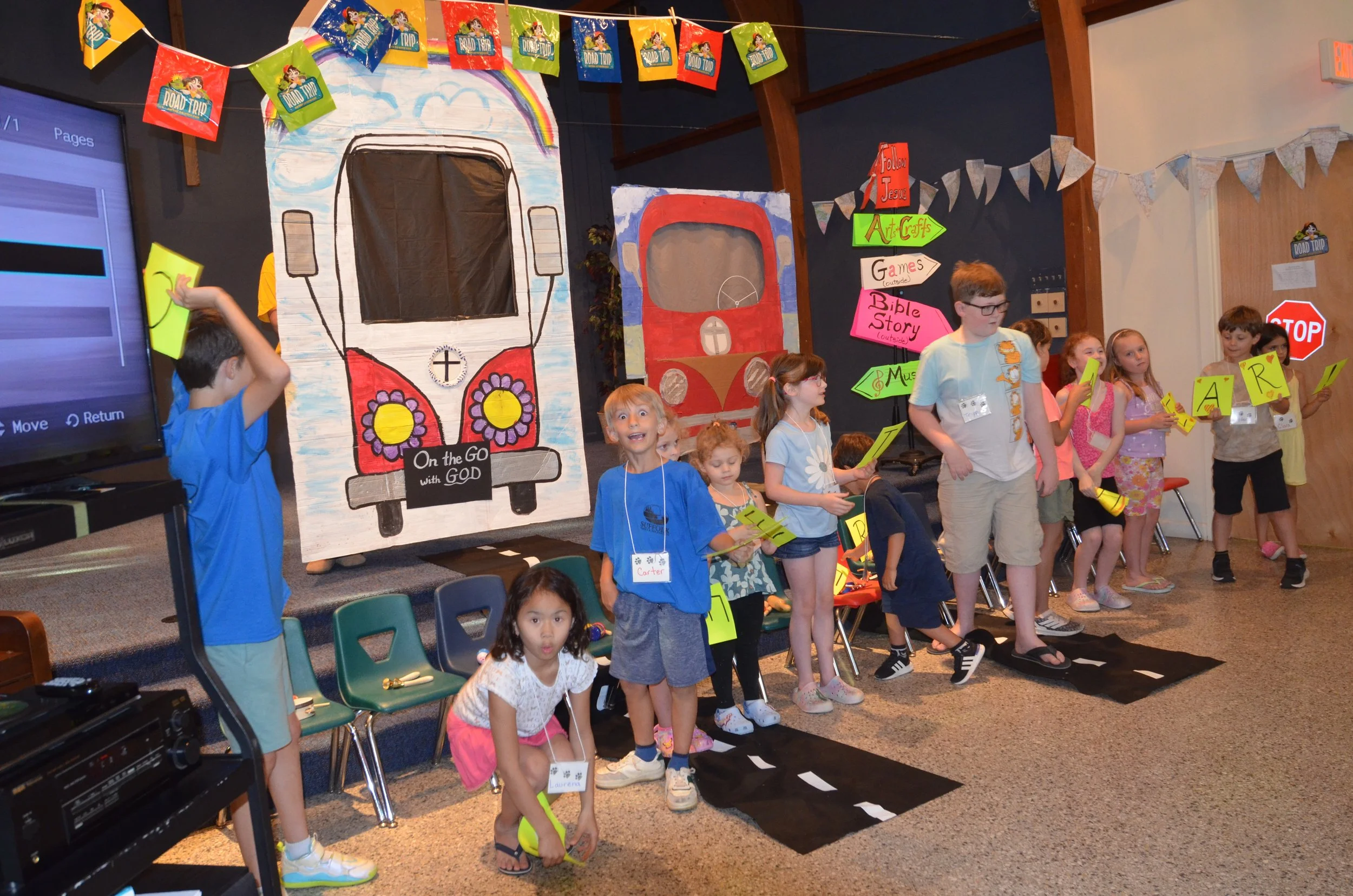 This year for VBS, we learned that God is always with us wherever we go. We learned these lessons through our Road Trip theme, which showed the children that throughout life’s twists and turns, through every detour and traffic light, our Lord God is always by our side, accompanying us on our journey.